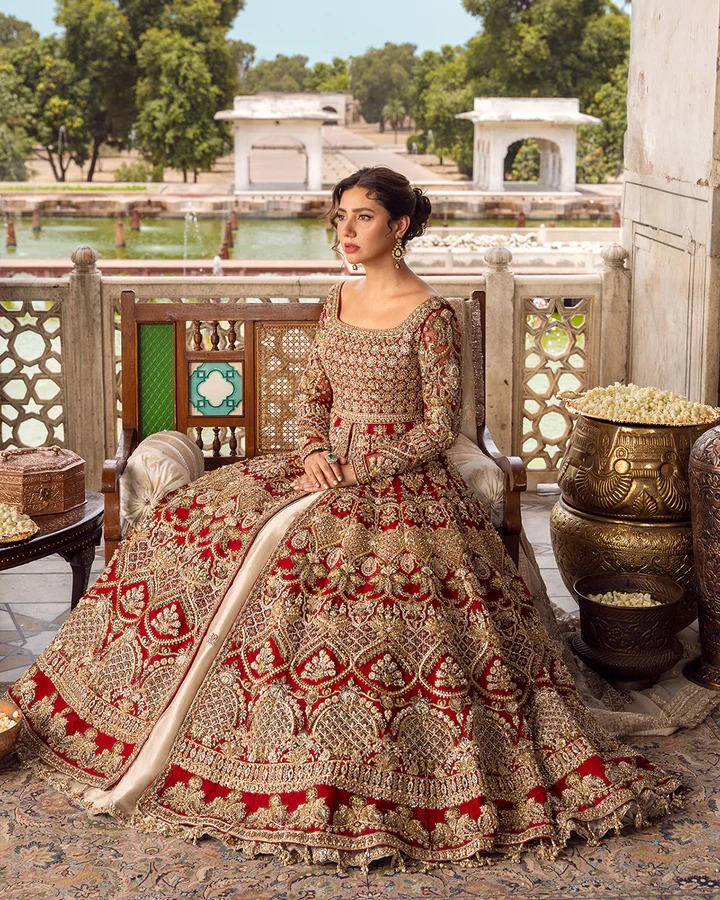 The dupatta is fashioned from fine net and detailed with delicate handwork that enhances its airy, elegant texture. Its embellishments are arranged to blend seamlessly with the gown and lehenga, completing the ensemble with a refined, heirloom-worthy charm.