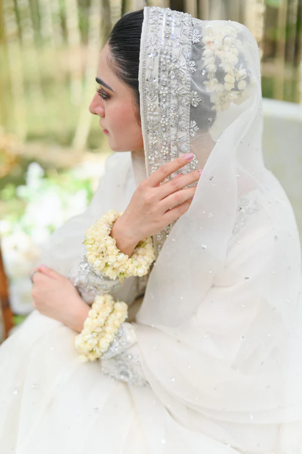 The kalidaar is cut from the softest pure handloom cotton net, offering a light and flowing silhouette. It is beautifully hand embellished with goti, sequins, kora, dabka, naqshi, and crystals, applied with fine craftsmanship across the panels. Pure silk edgings frame the design, adding a refined finish while enhancing durability and elegance. The inner layering ensures comfort and structure for extended wear.