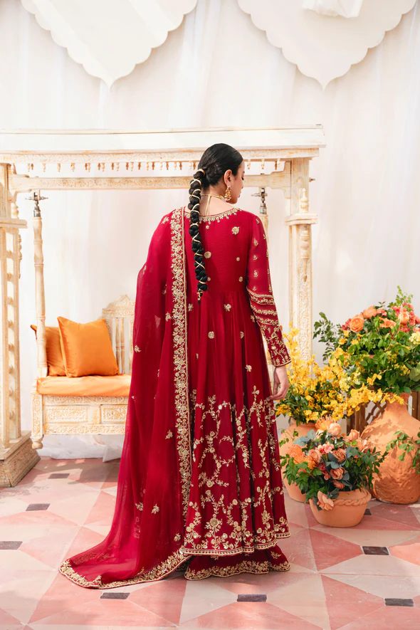 Gold ada work and detailed hand embellishments applied across the kalidaar and dupatta, creating a luxurious and captivating bridal look.