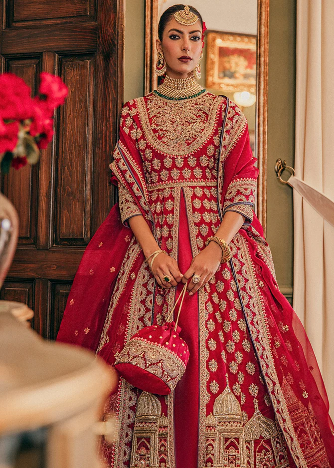 A breathtaking fusion of Mughal heritage and modern craftsmanship, this ensemble is a masterpiece of traditional South Asian couture.