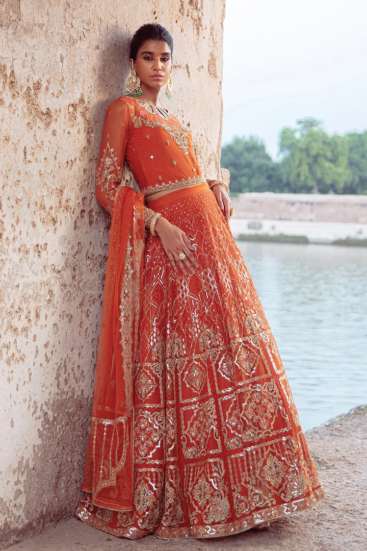 The choli in an alluring peach shade is adorned with hand-crafted details of embroidery, sequins, and motifs. Floral designs and premium quality fabric make this choli a perfect choice to create a lavish Wedding Dress.