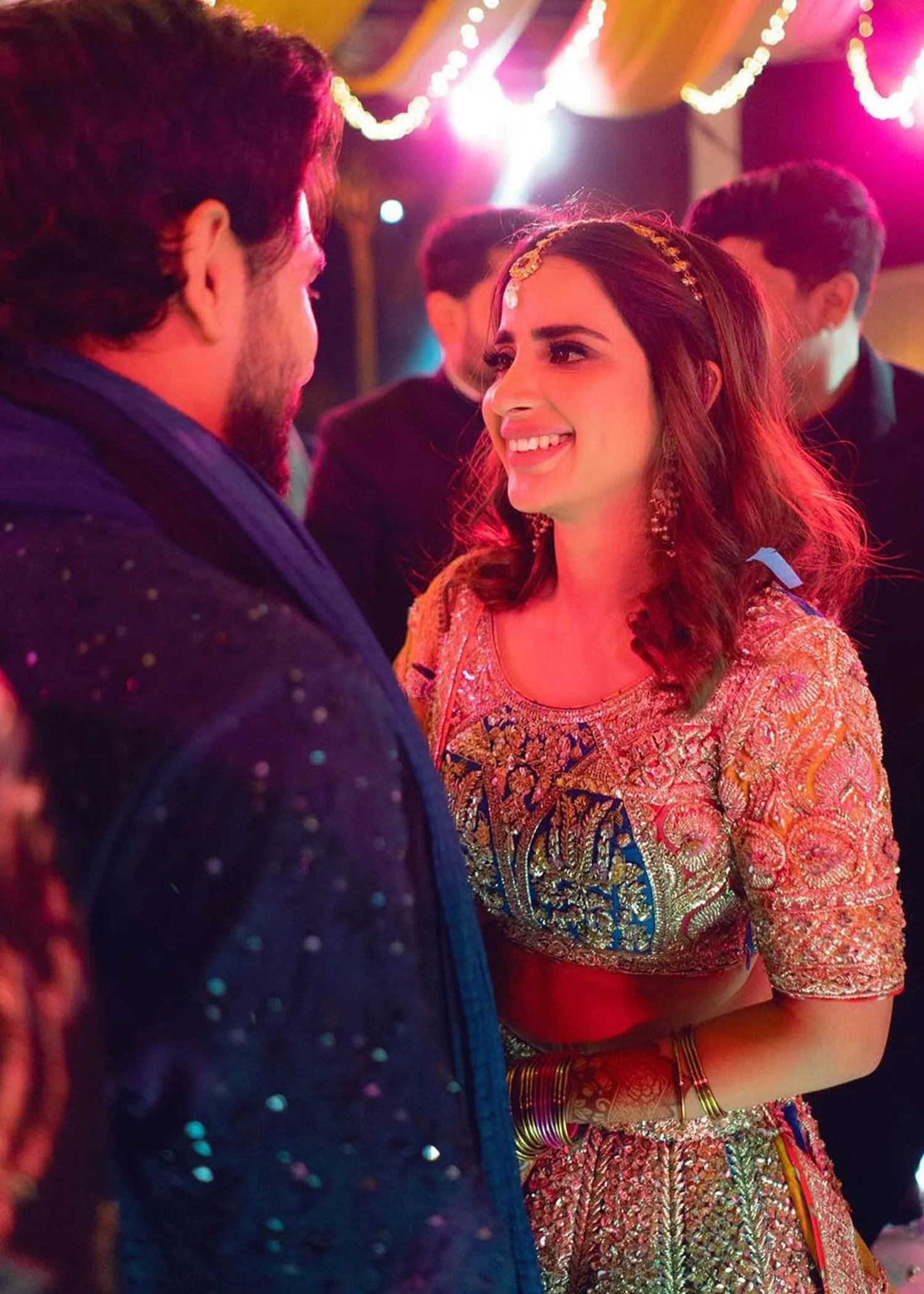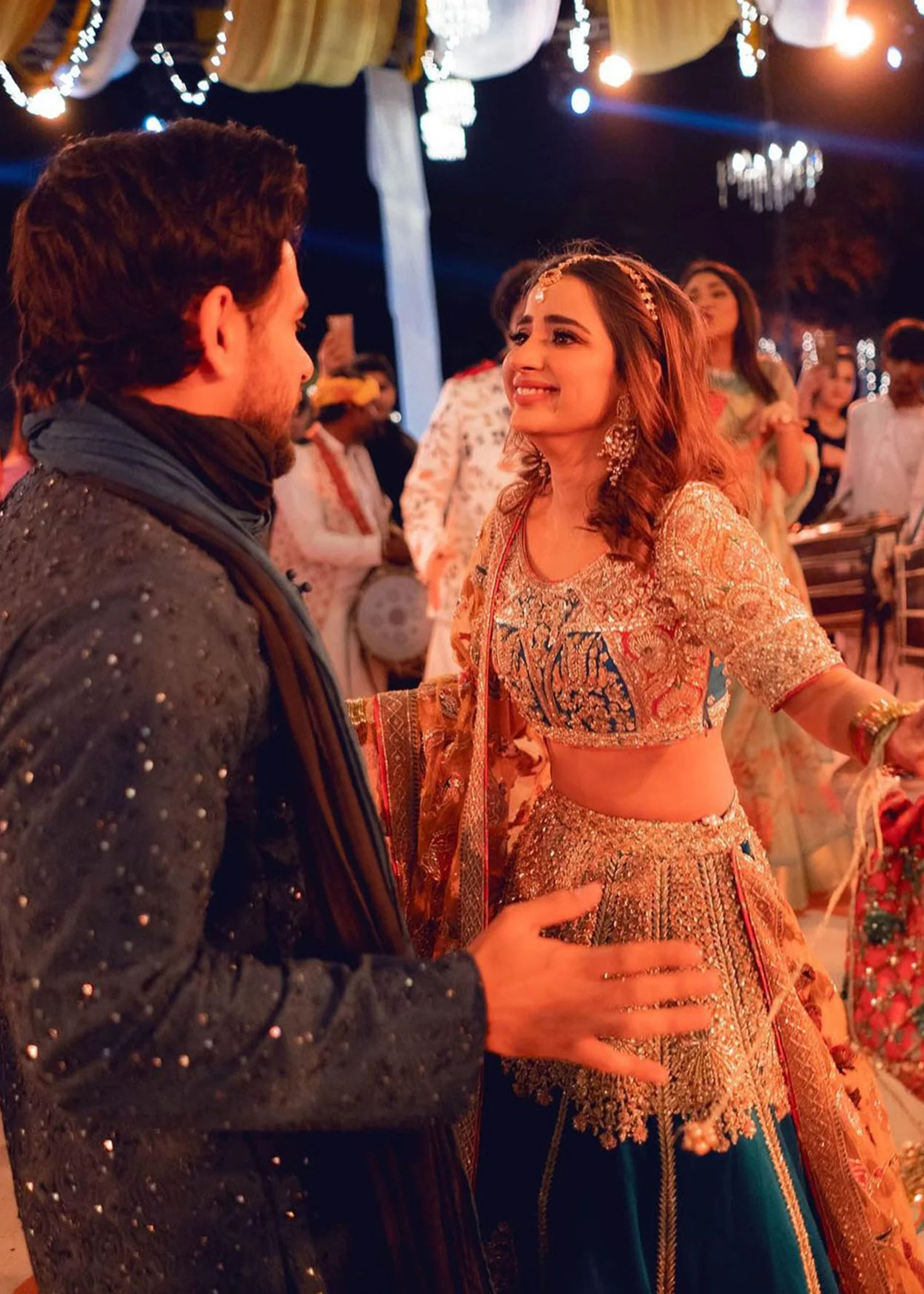 Entirely handcrafted using sequins, beads, Swarovski crystals, tilla embroidery, cut-glass detailing, kora, and naqshi techniques. Slight artisanal variations are natural and reflect the authenticity of handcrafted couture.